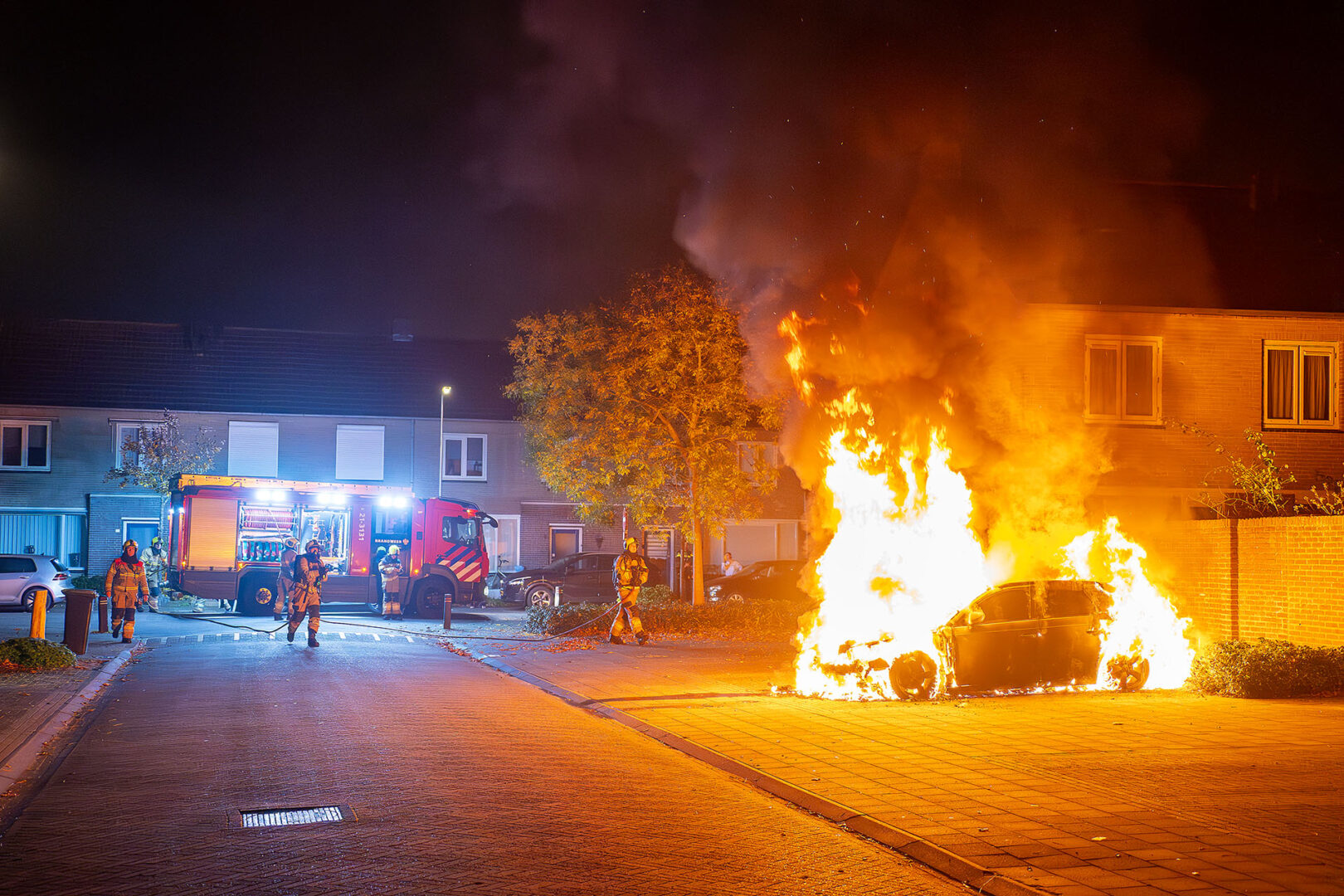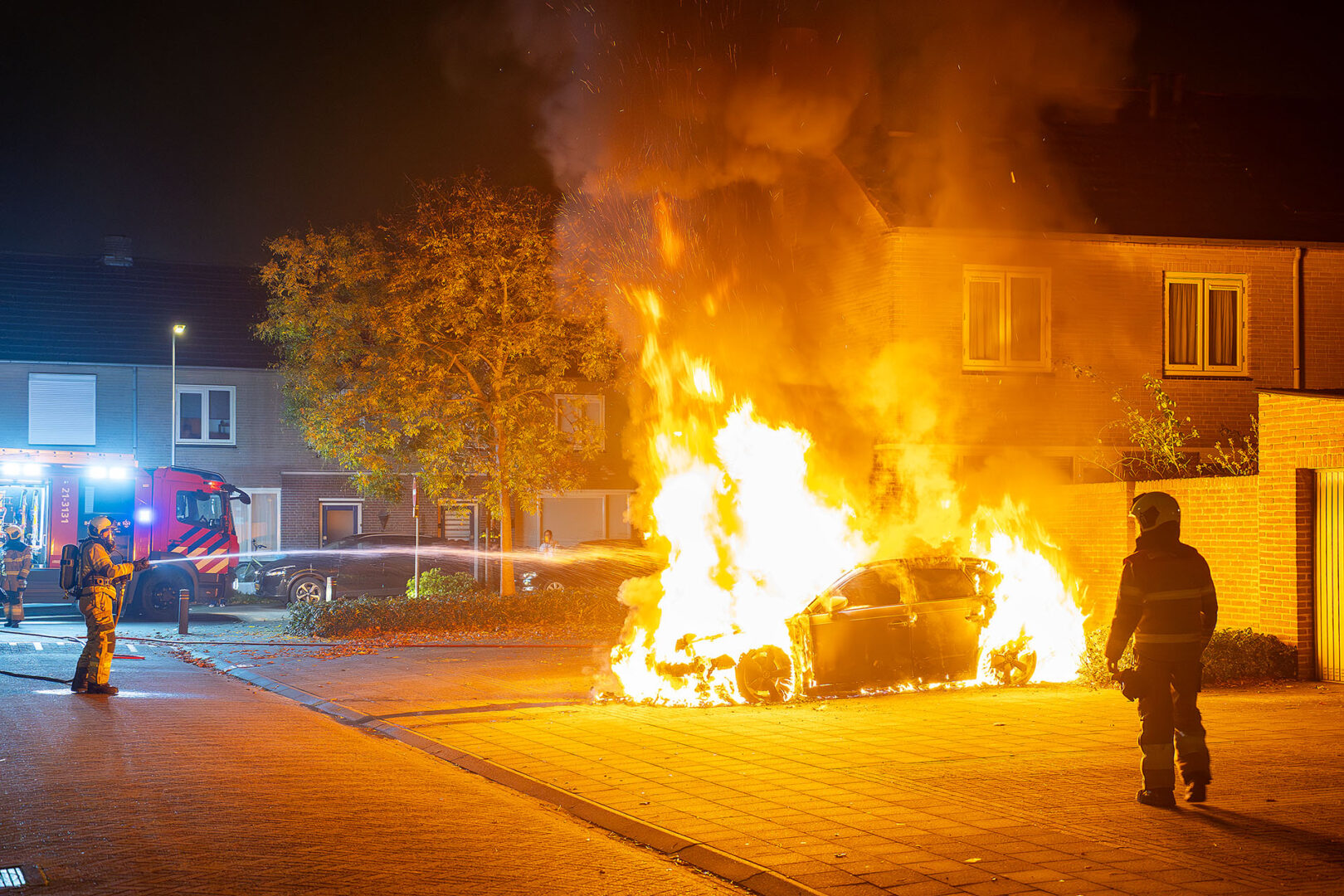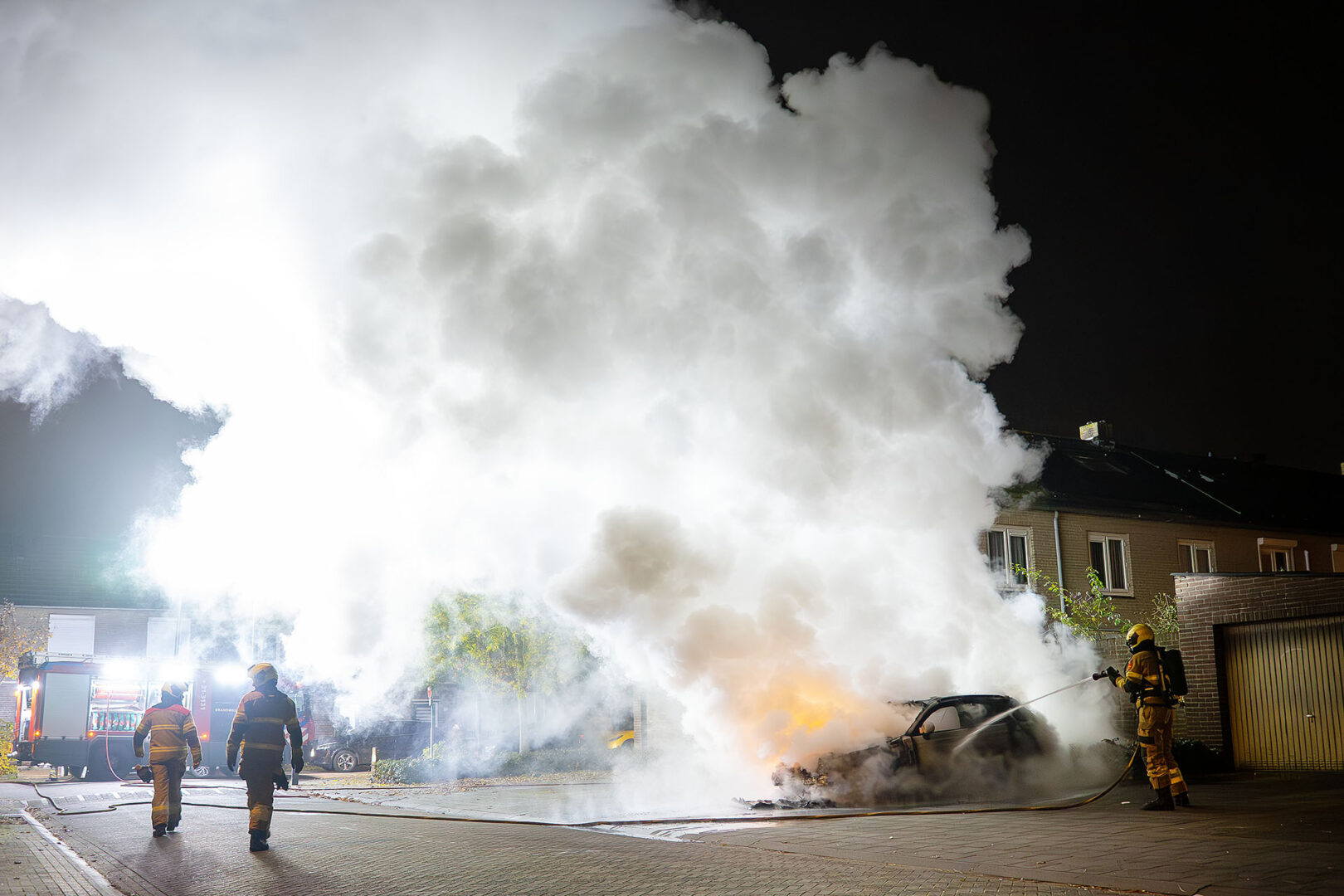 Auto in lichterlaaie in Osse Constantijn Huygensstraat