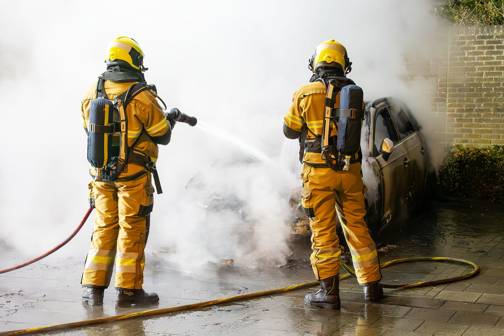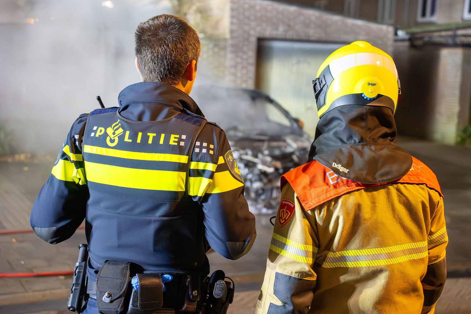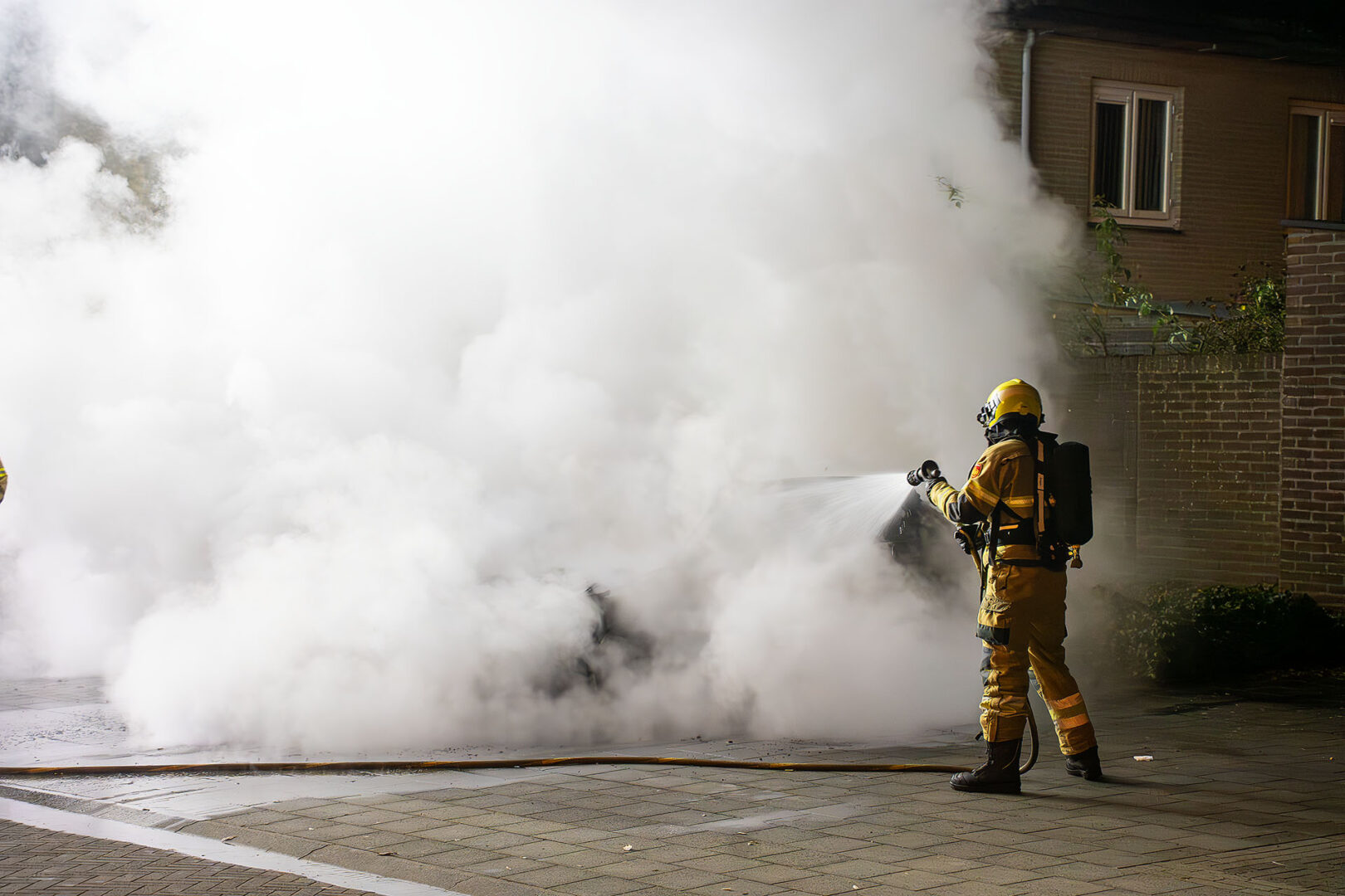 Auto in lichterlaaie in Osse Constantijn Huygensstraat