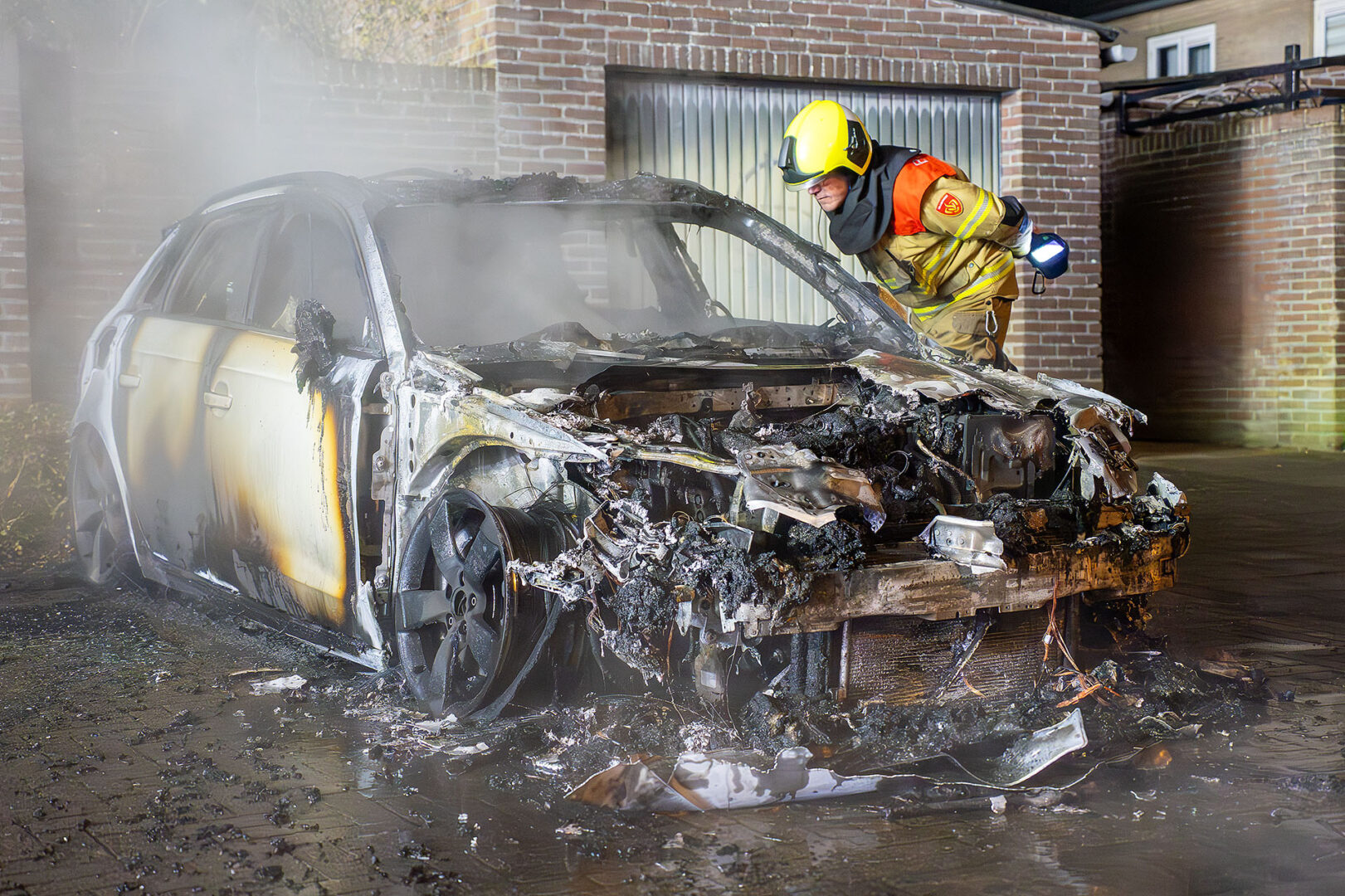 De brandweer was snel ter plaatse maar toen was de auto al niet meer te redden. Van wat ooit een Audi was bleef maar weinig over. Bij het blussen kwam veel rook vrij. De politie is begonnen met een onderzoek naar de oorzaak van de brand.