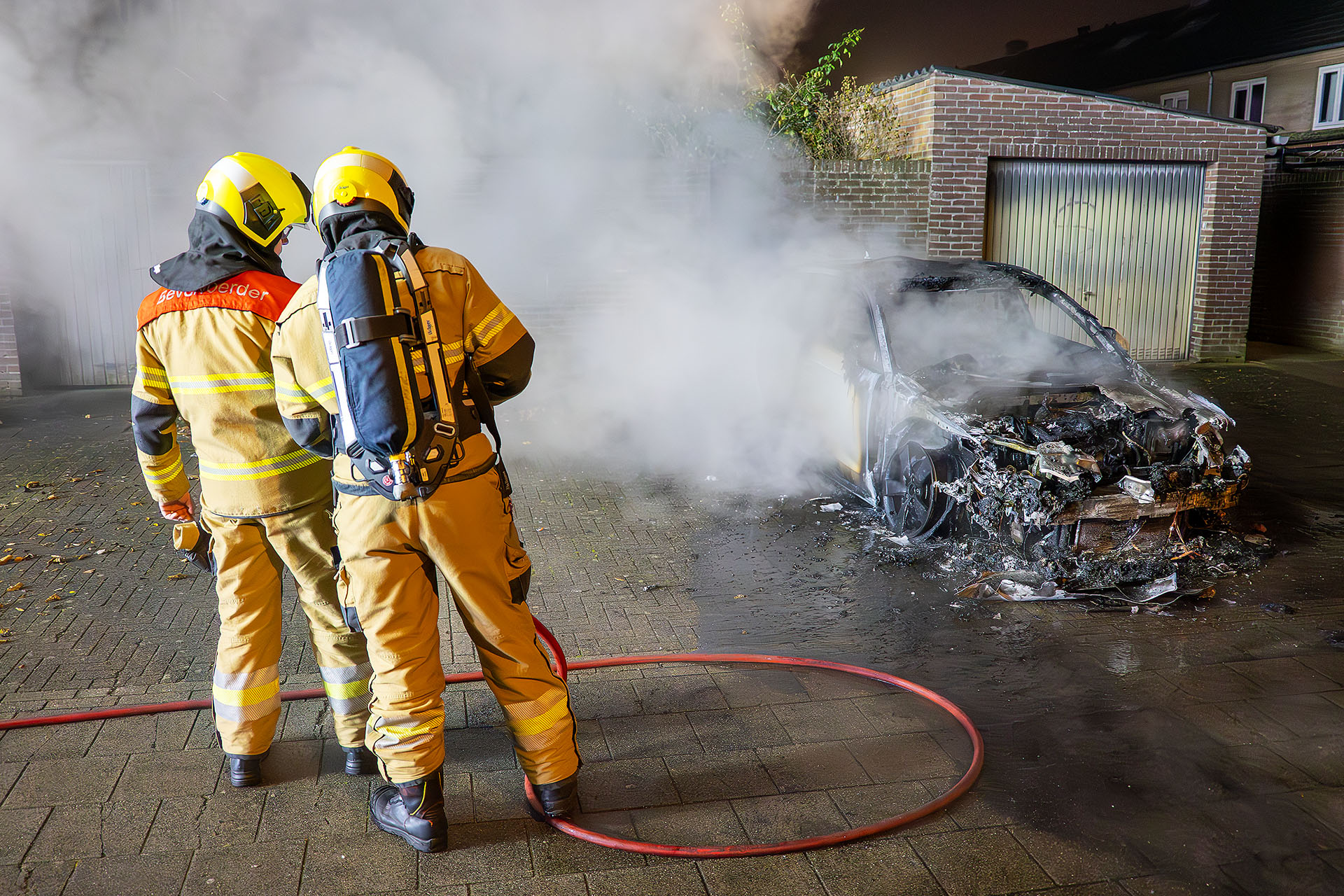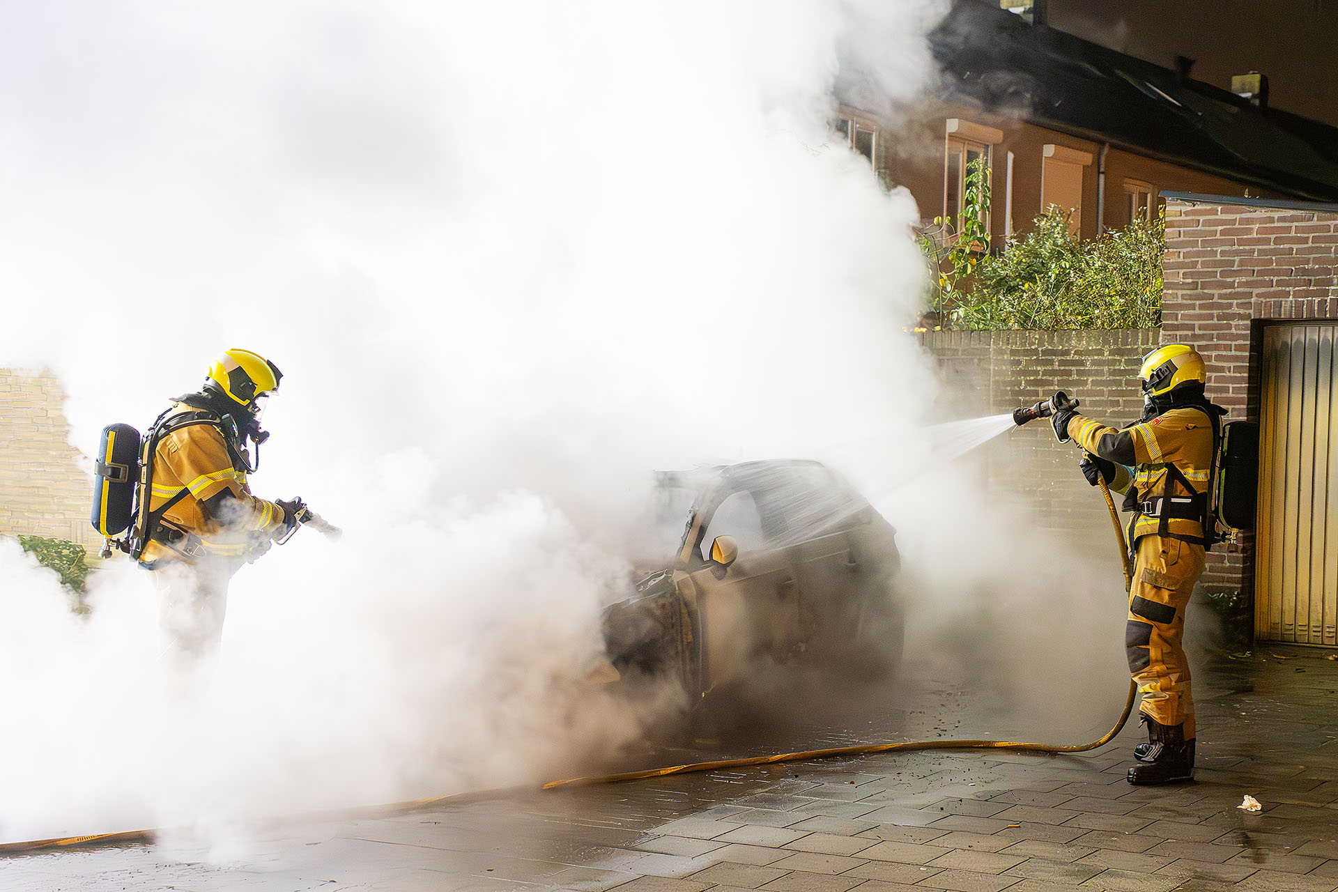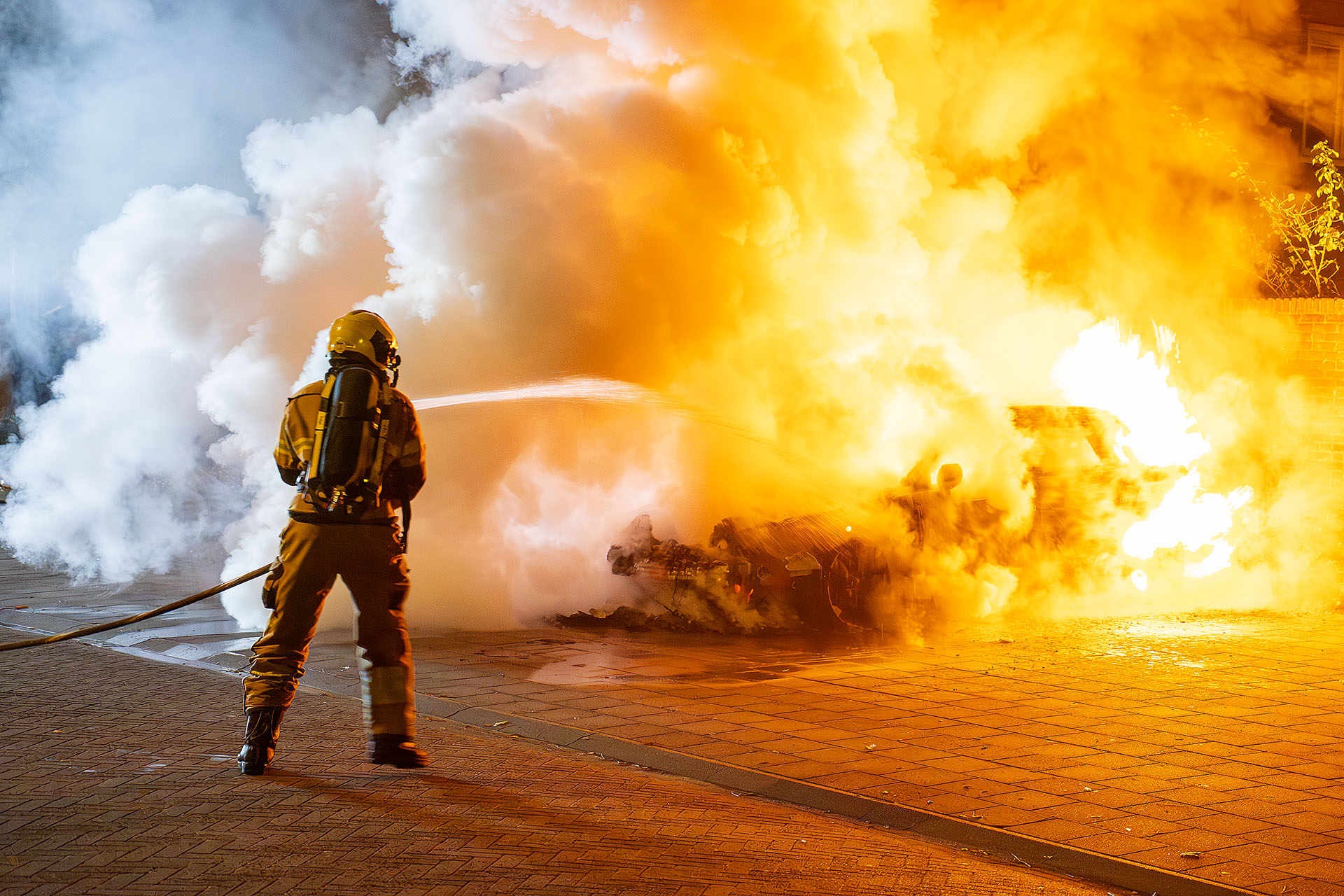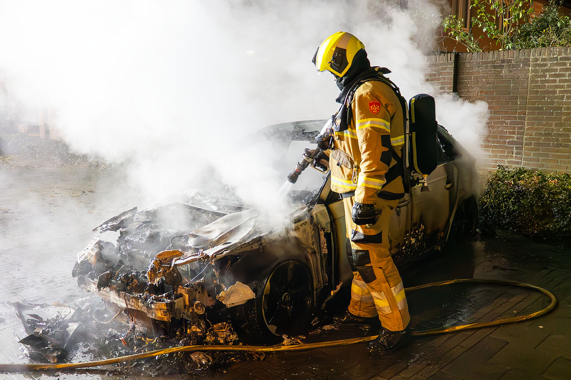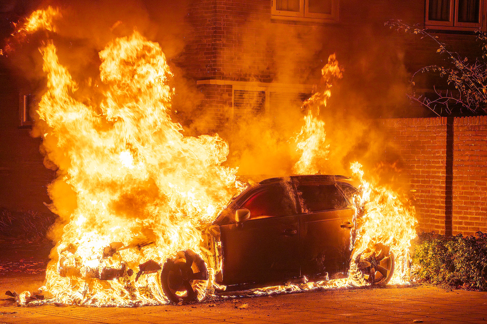 Auto in lichterlaaie in Osse Constantijn Huygensstraat