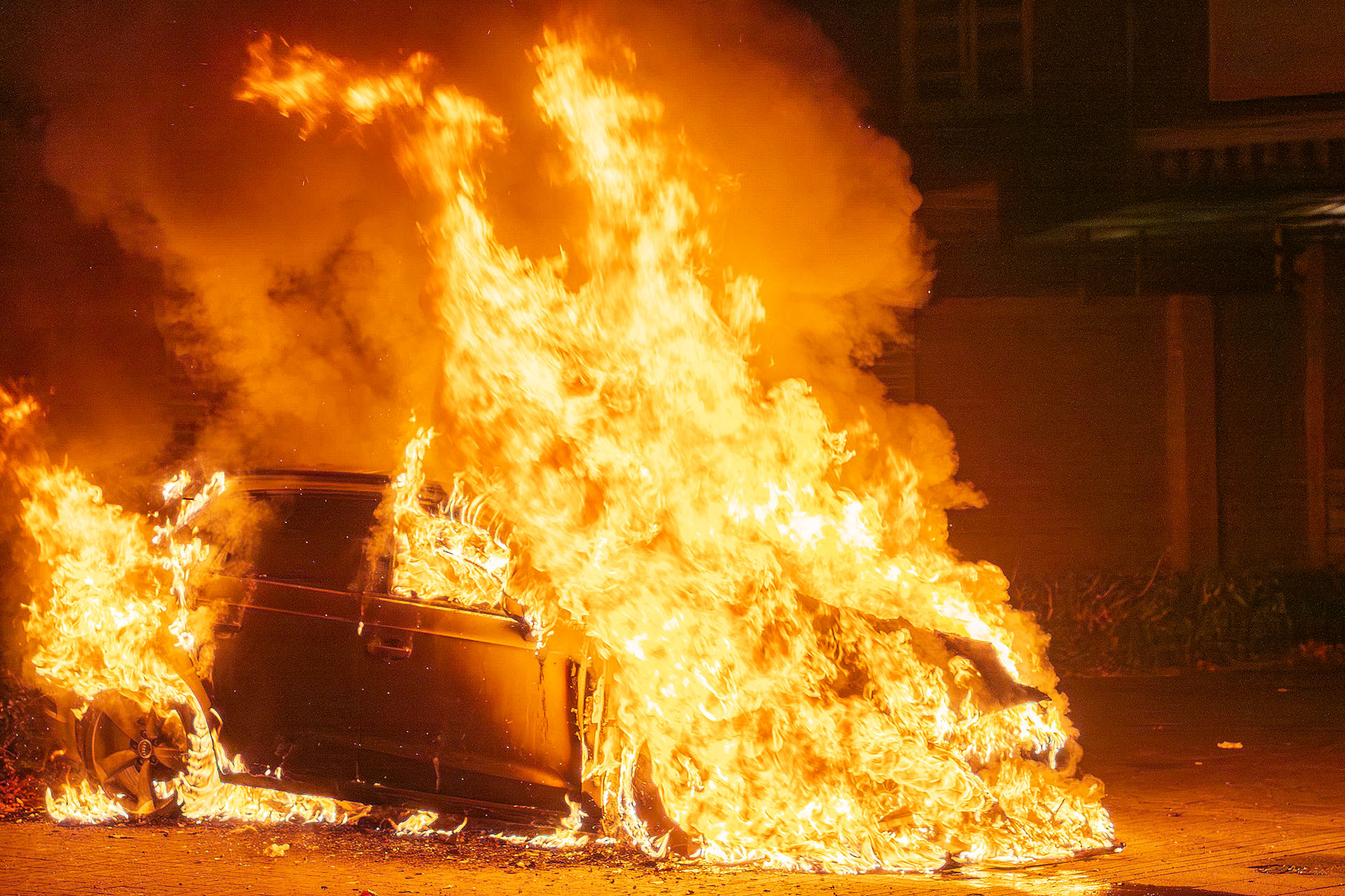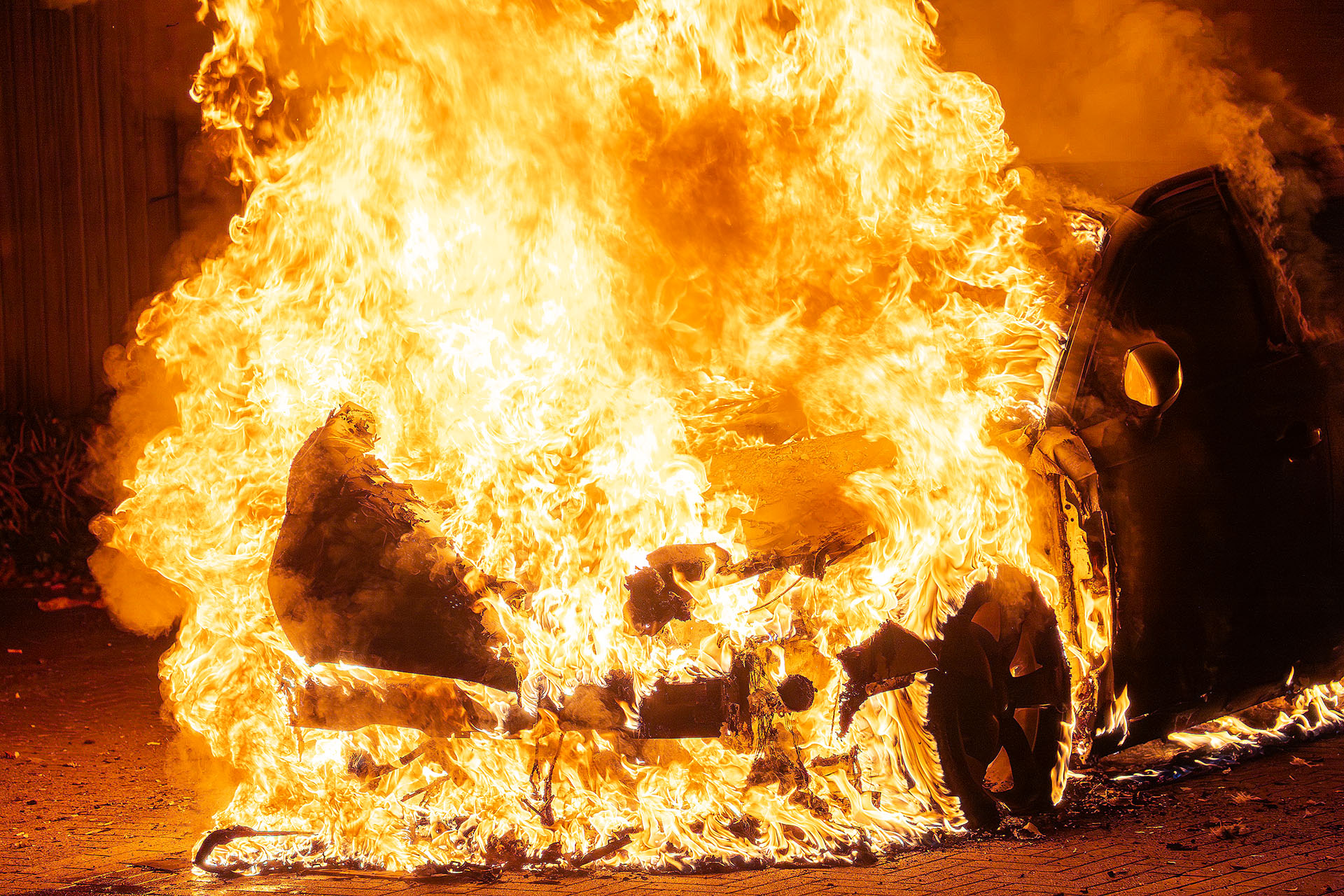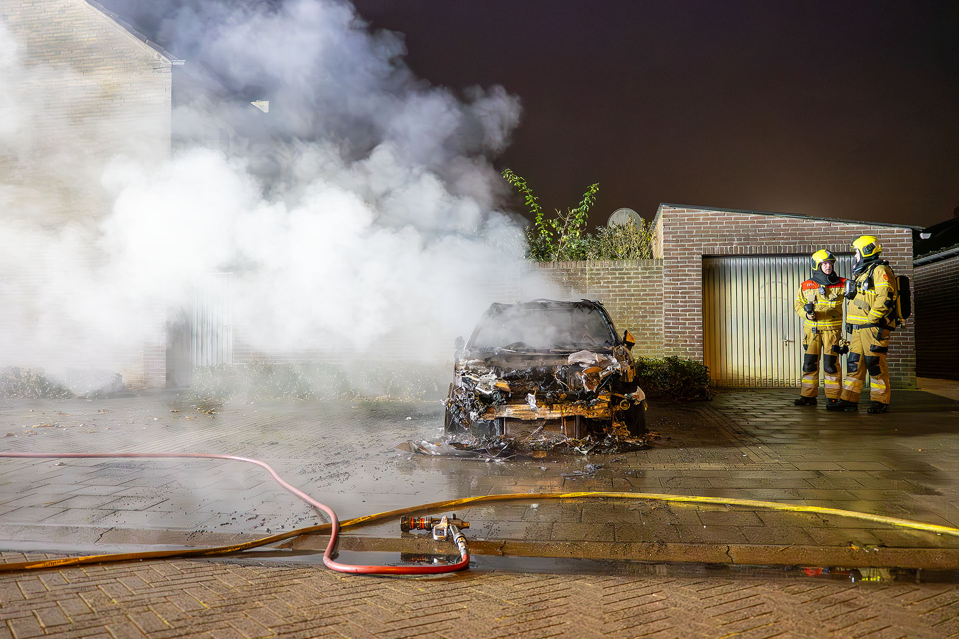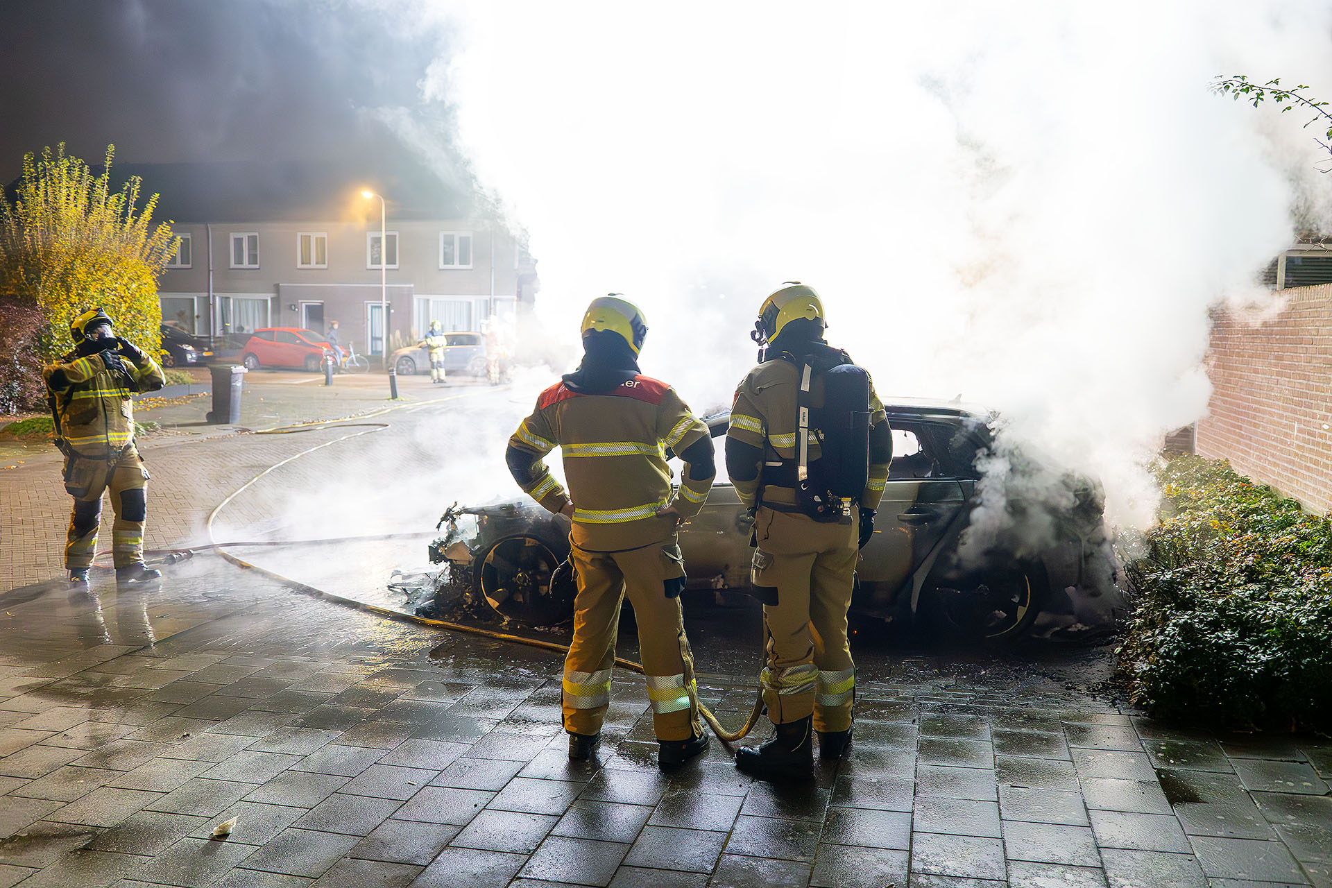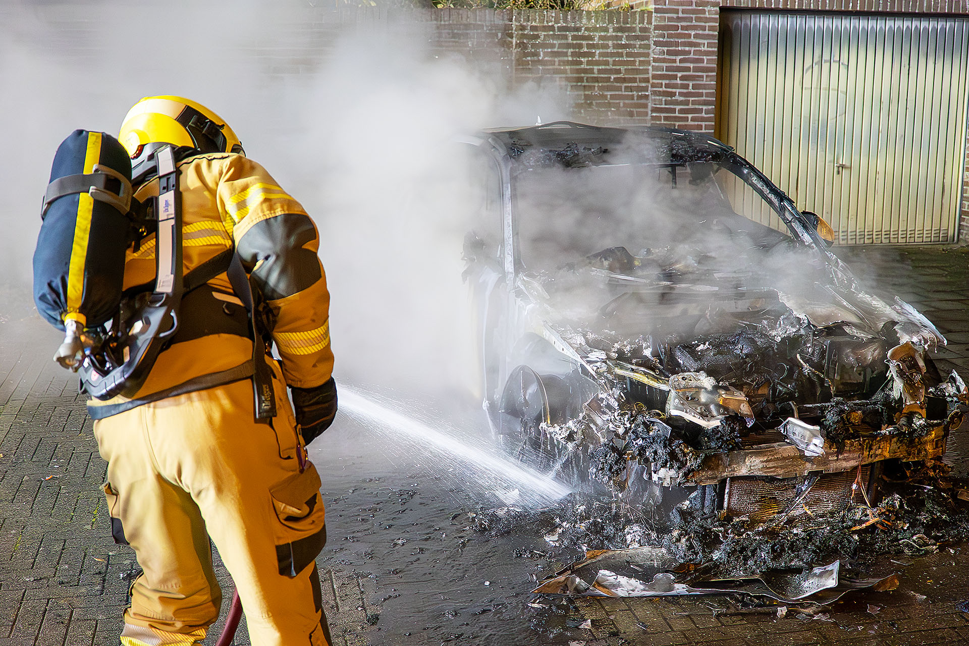 Auto in lichterlaaie in Osse Constantijn Huygensstraat