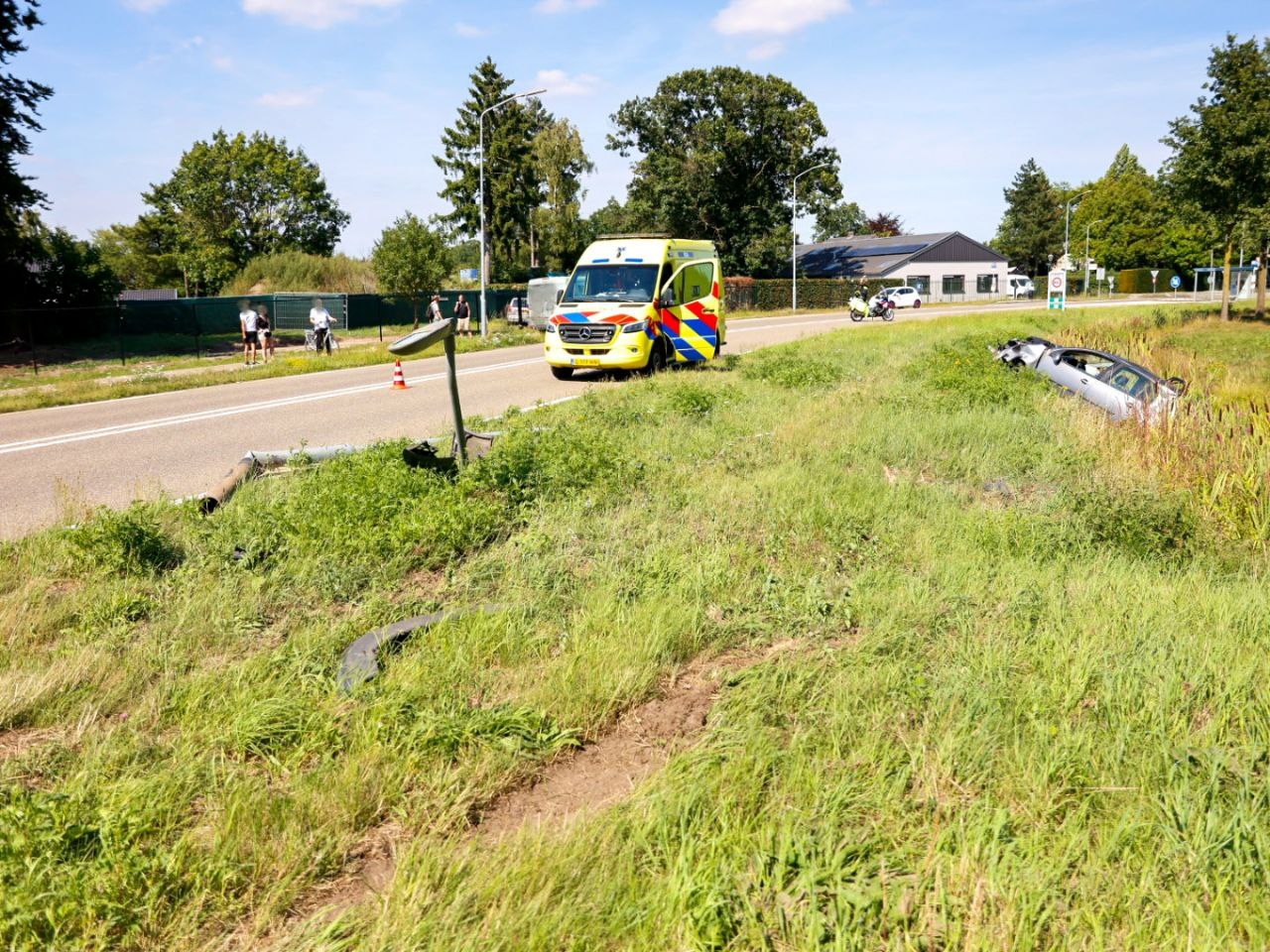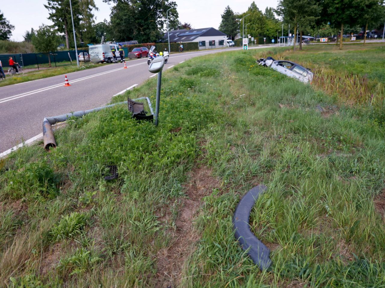 GEFFEN – Een auto is zaterdagmiddag op de Rijksweg in Geffen uit de bocht gevlogen en in een droge sloot terecht gekomen. De bestuurder reed daarbij ook nog een lantaarnpaal uit de grond.