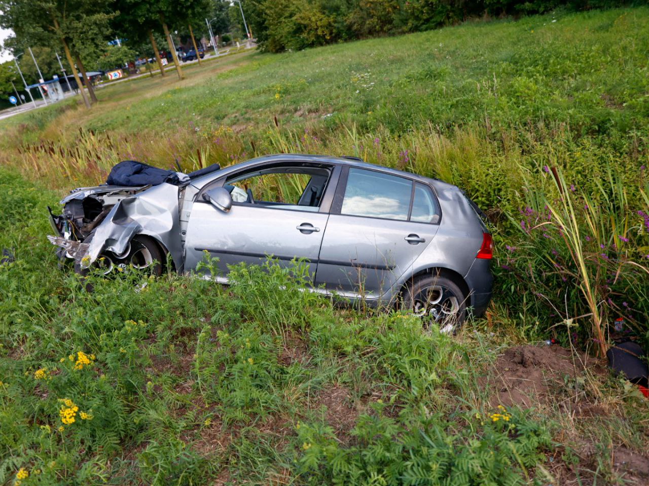 De brandweer werd gealarmeerd maar bleek al snel niet meer nodig. De bestuurder zou mogelijk onder invloed achter het stuur hebben gezeten en is hiervoor door de politie aangehouden. De zwaarbeschadigde auto moest door een bergingsbedrijf uit de sloot worden getakeld.