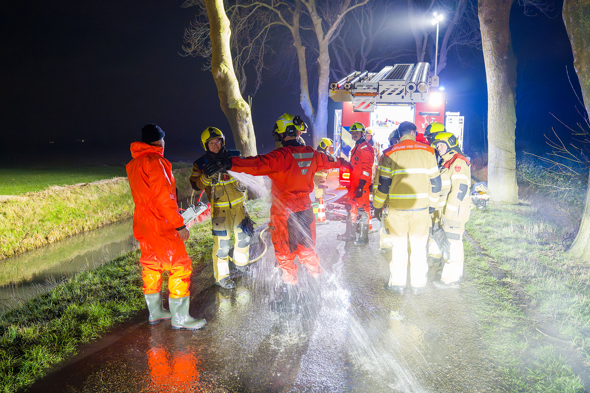 De hulpdiensten rukten na de melding van het ongeval met groot materieel uit. Behalve de politie en ambulancedienst rukten ook de brandweer en een traumahelikopter uit. Meerdere brandweerlieden zochten met waadpakken en prikstokken de sloot af terwijl collega’s met zaklampen de weg en omliggende weilanden afspeurden.