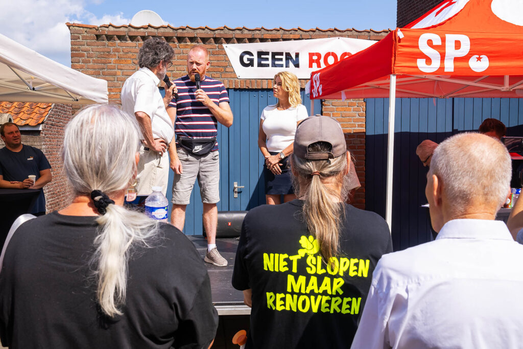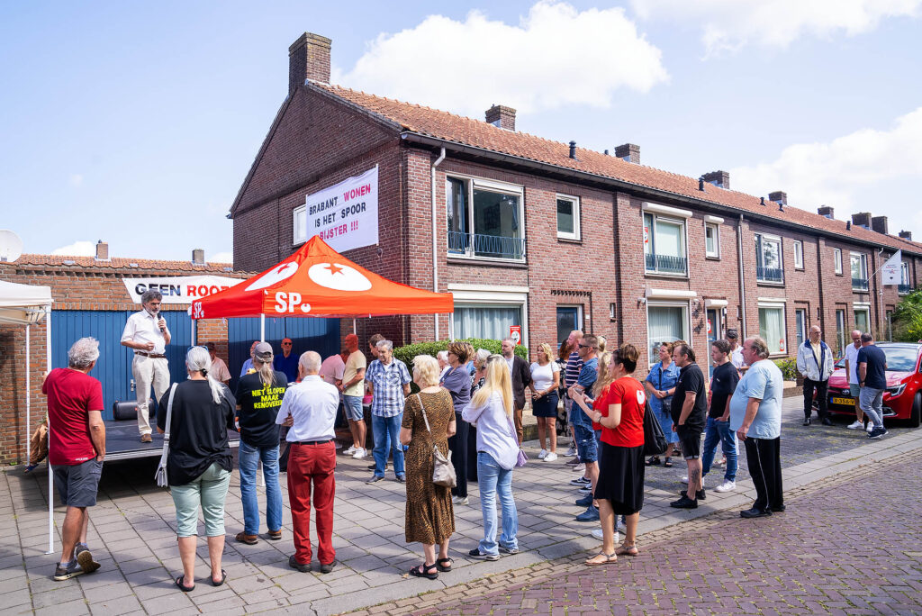 OSS – De bewoners van enkele straten in de roofvogelwijk in Oss hebben zaterdagmiddag samen met de SP actie gevoerd tegen de voorgenomen sloop van hun woningen. SP-politici waaronder bestuurslid Henk van Gerven, gemeenteraadslid Leroy Vossenberg en landelijk SP-leider Jimmy Dijk waren aanwezig om de bewoners toe te spreken en hen een hart onder de riem te steken.
