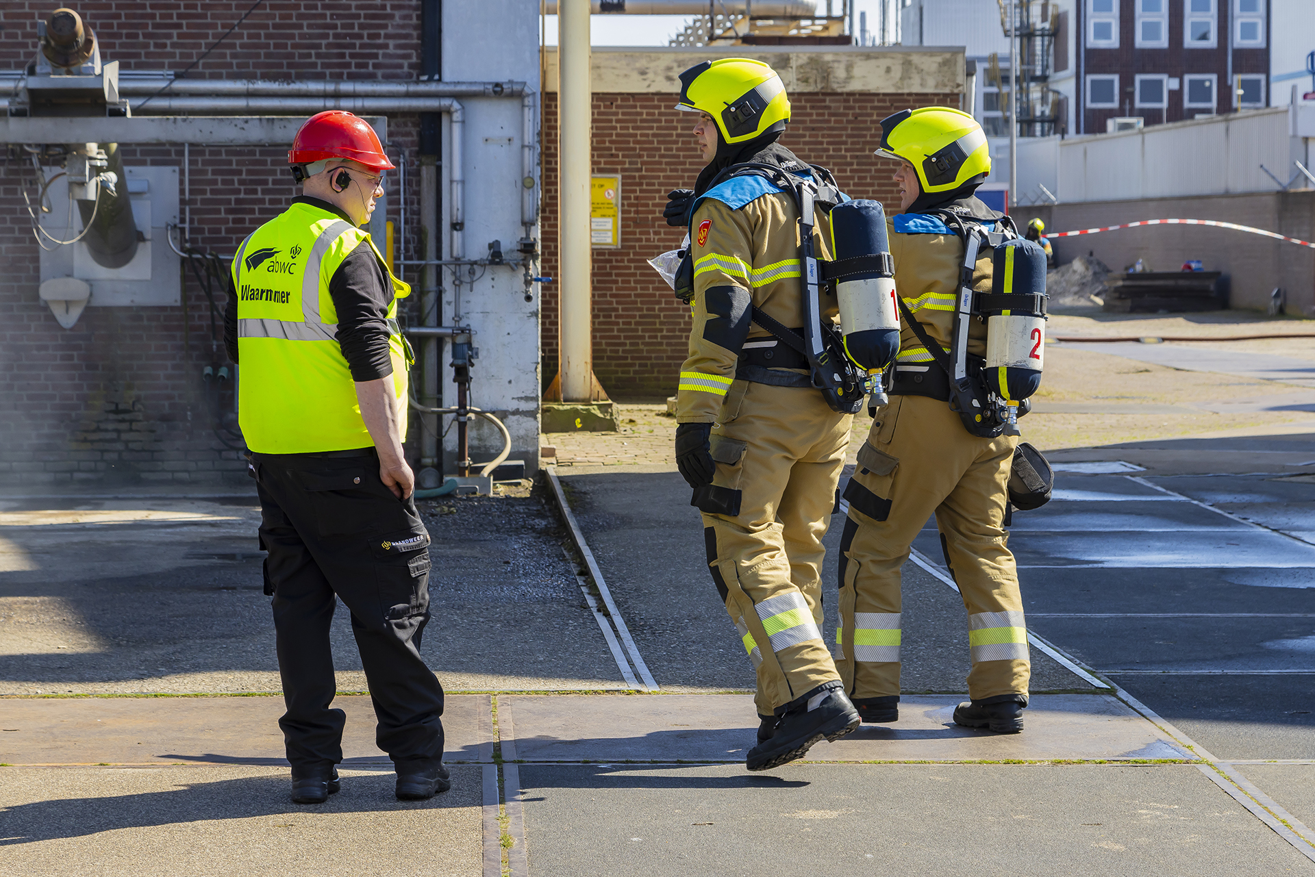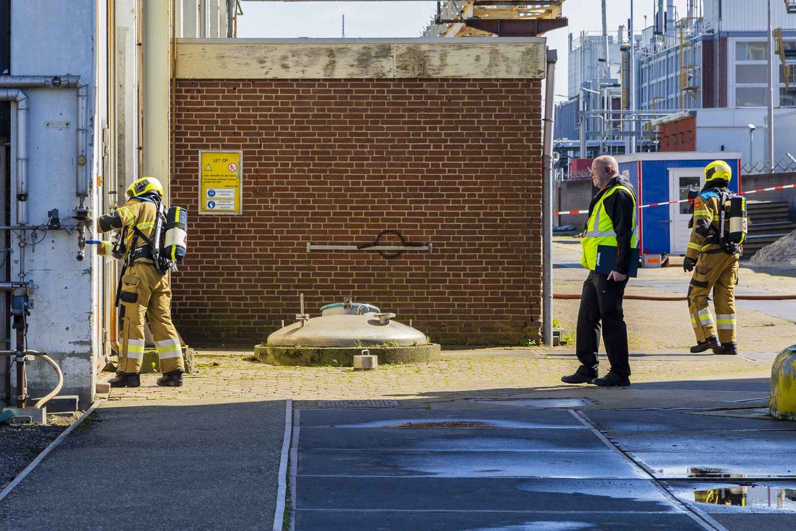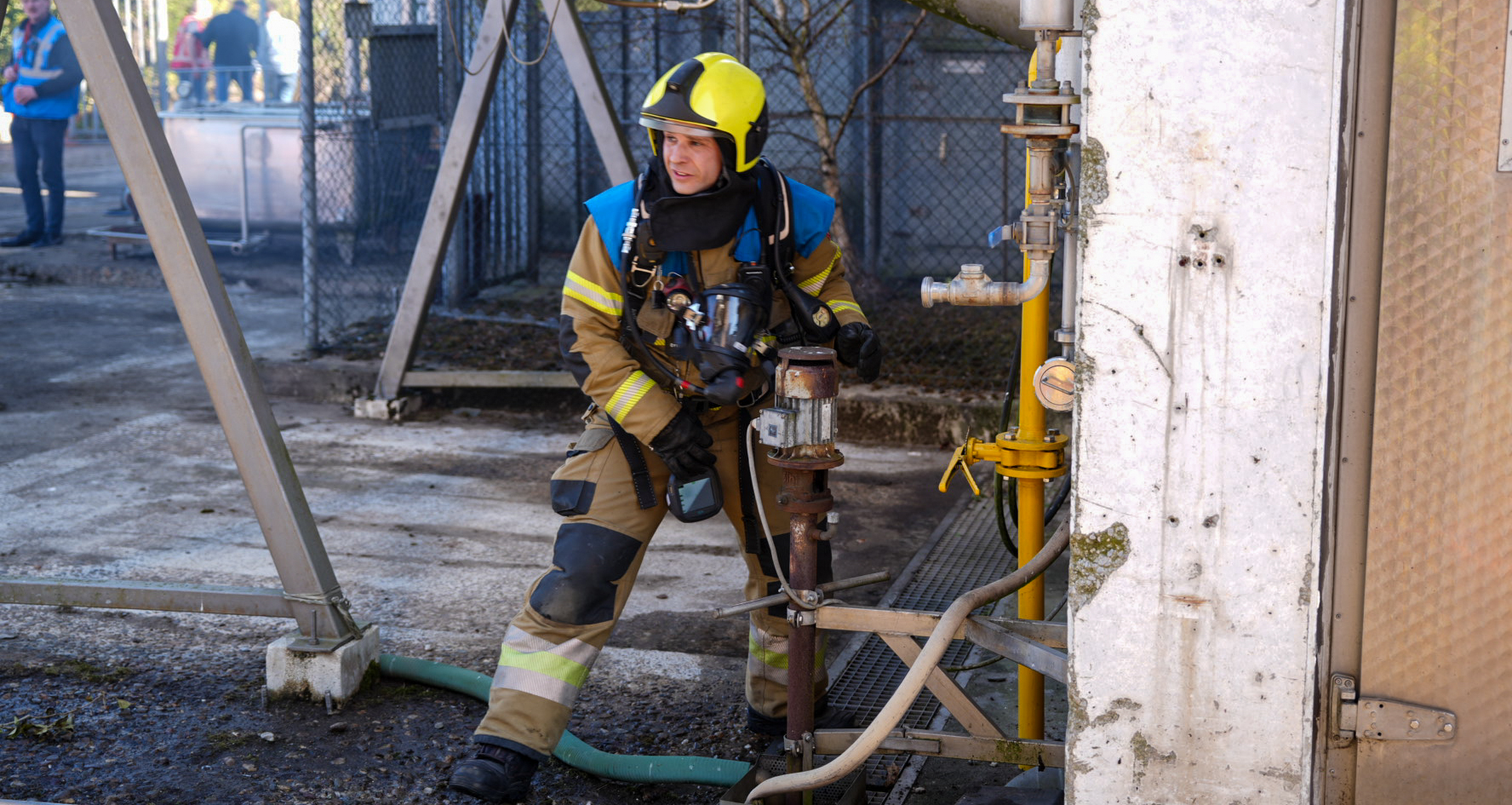 Op de eerste baan in de klasse brandbestrijding moest een fictieve brand in een machineruimte door de deelnemende ploegen worden bestreden. Bij onderhoudswerkzaamheden was een gasbrand ontstaan die naar buiten was geslagen en waarbij twee slachtoffers vielen.
