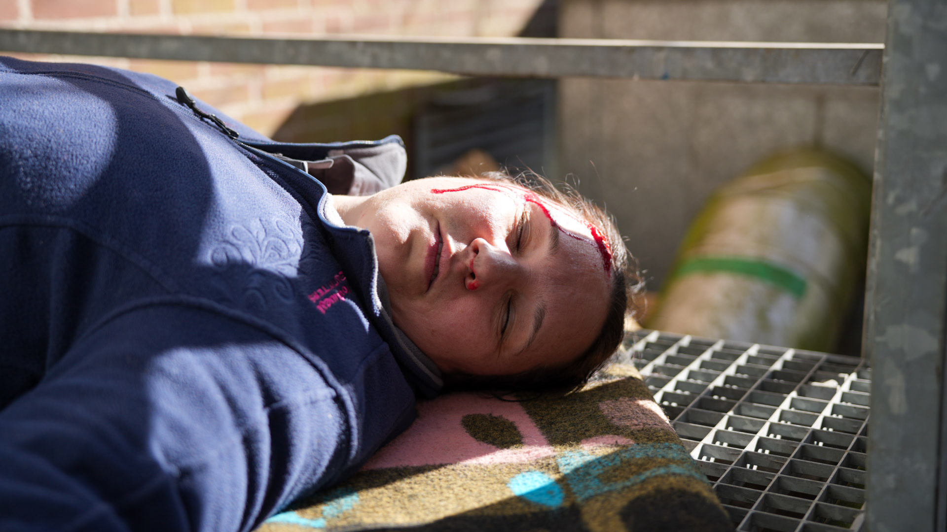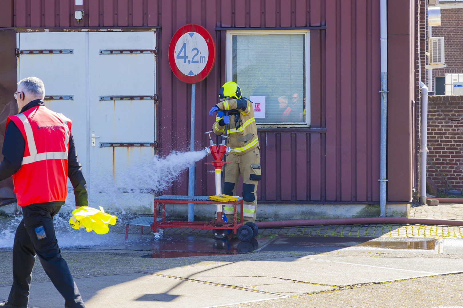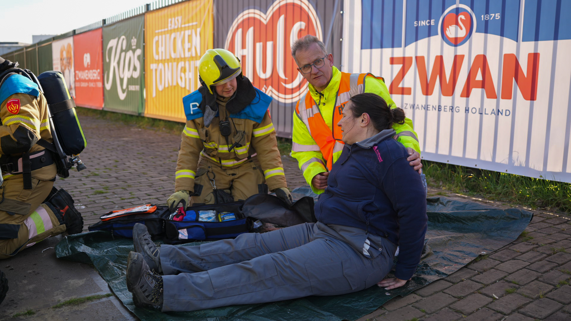 Op de eerste baan in de klasse brandbestrijding moest een fictieve brand in een machineruimte door de deelnemende ploegen worden bestreden. Bij onderhoudswerkzaamheden was een gasbrand ontstaan die naar buiten was geslagen en waarbij twee slachtoffers vielen.