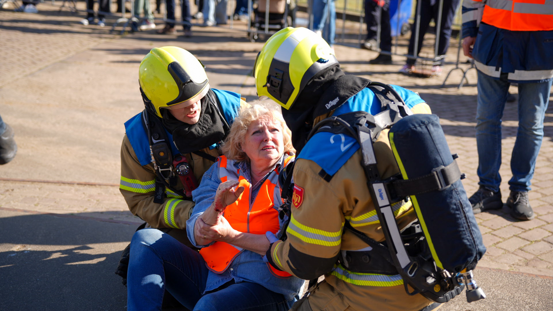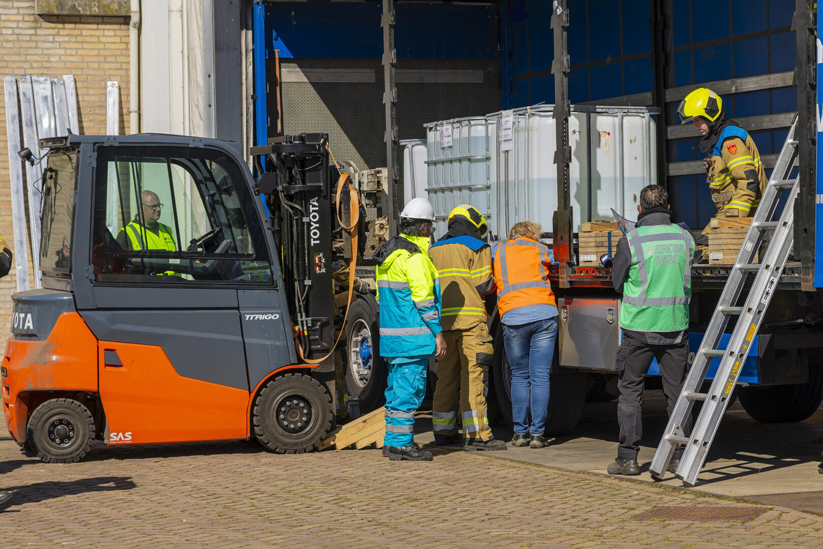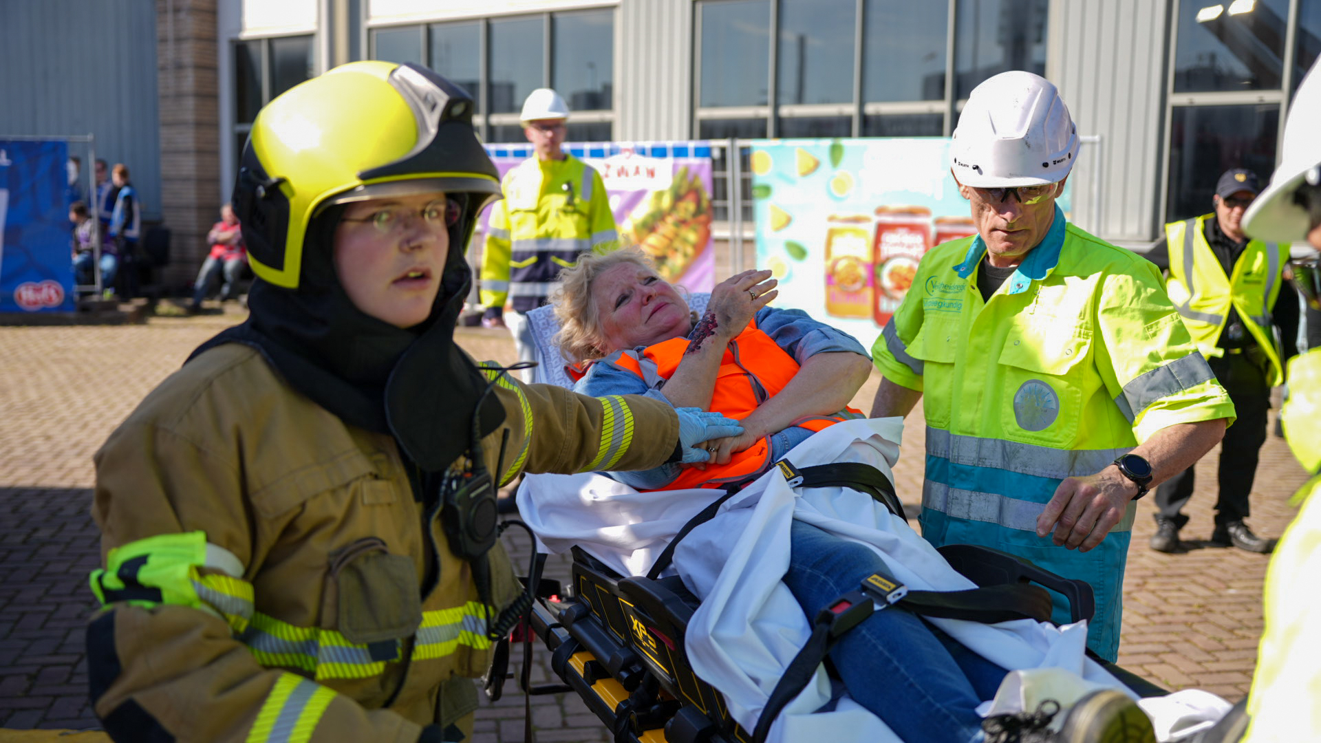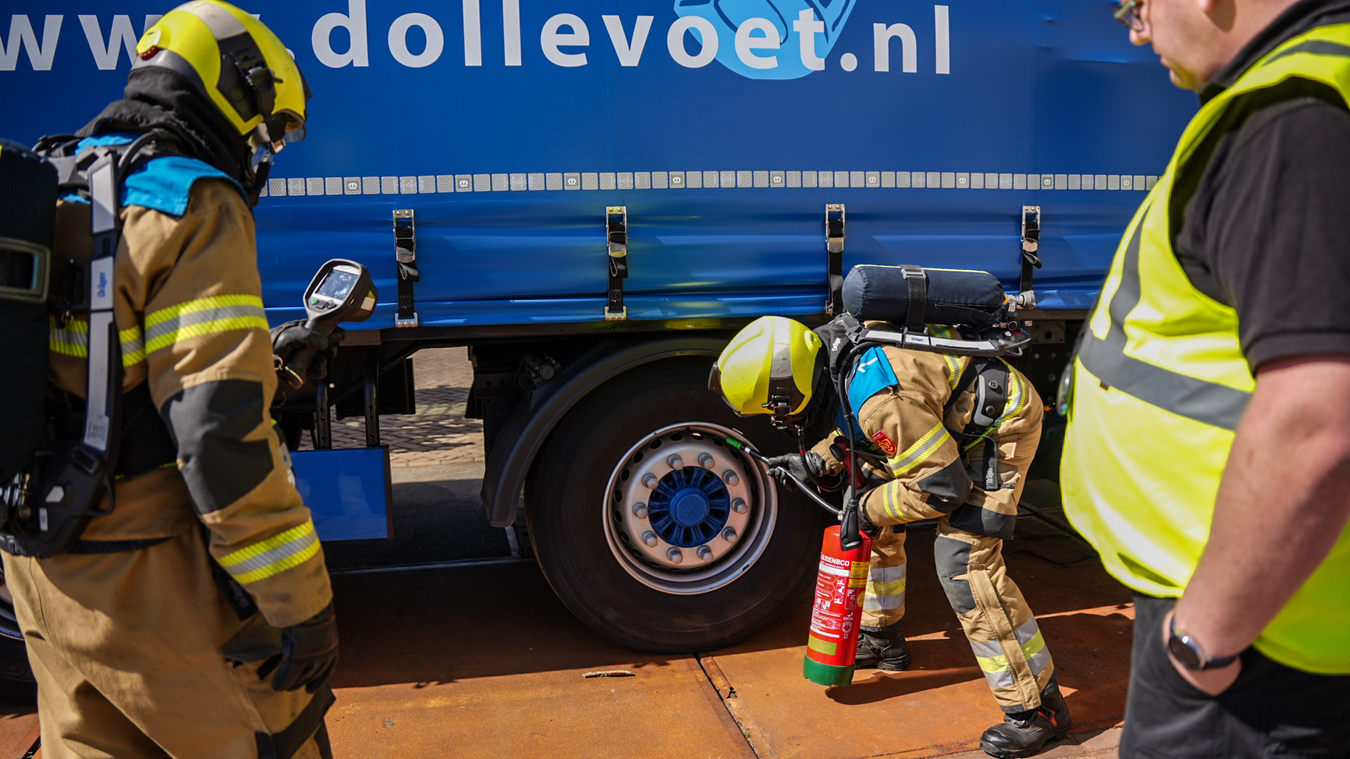 Bij de tweede wedstrijdbaan kregen de deelnemende brandweerploegen een fictieve melding van een brandende vrachtauto. Bij aankomst bleken de remmen van de truck in brand te staan. Een heftruckchauffeur had de vrachtwagen daarop zo snel mogelijk leeg willen maken maar daarbij was de chauffeur van de vrachtwagen in de truck bekneld komen te zitten onder een IBC-container.
