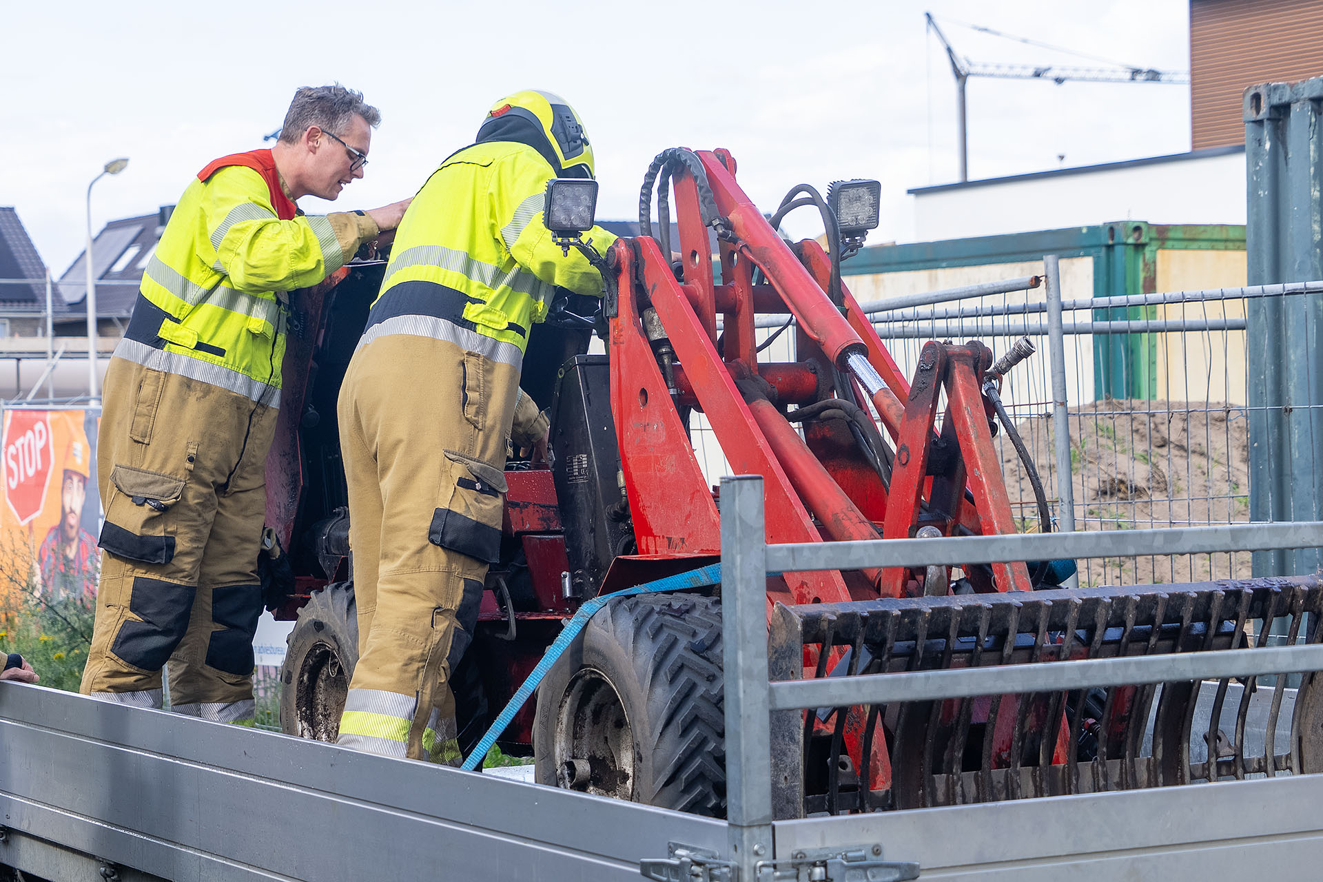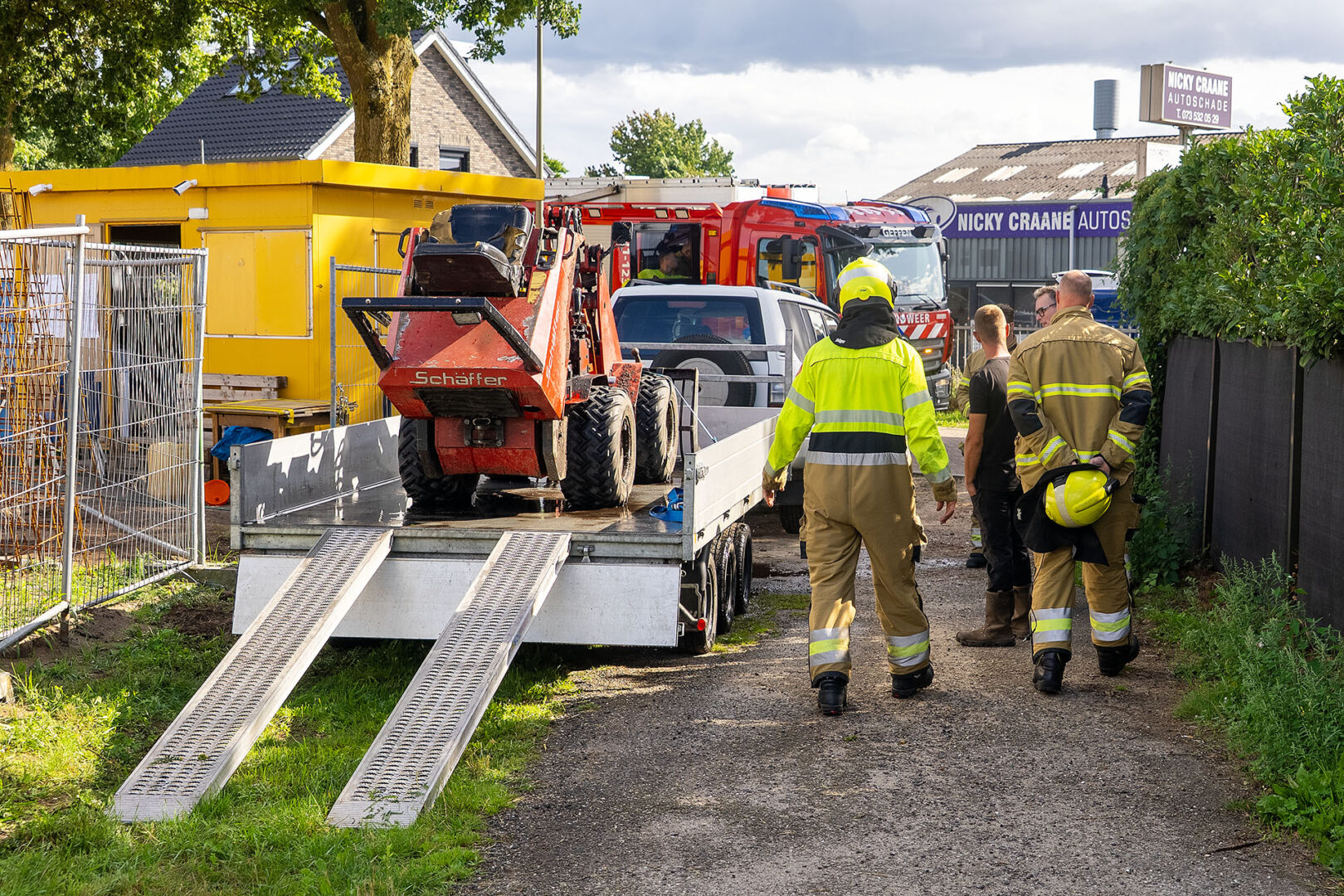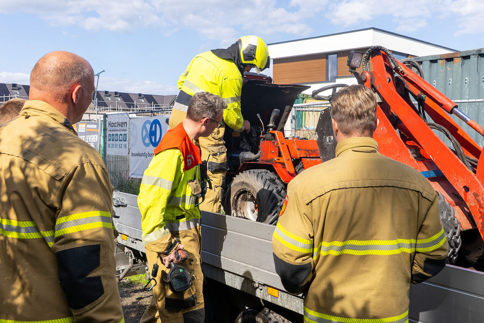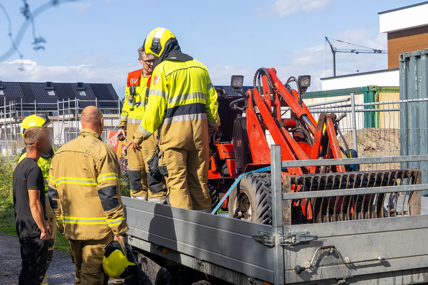 De man wist met een tuinslang die op de bouwplaats aanwezig was het vuur snel te doven. De inmiddels opgetrommelde brandweer hoefde dat bluswerk alleen nog maar te controleren. De man had de loader geleend van een vriend. Die moest hij nog gaan bellen met het slechte nieuws.