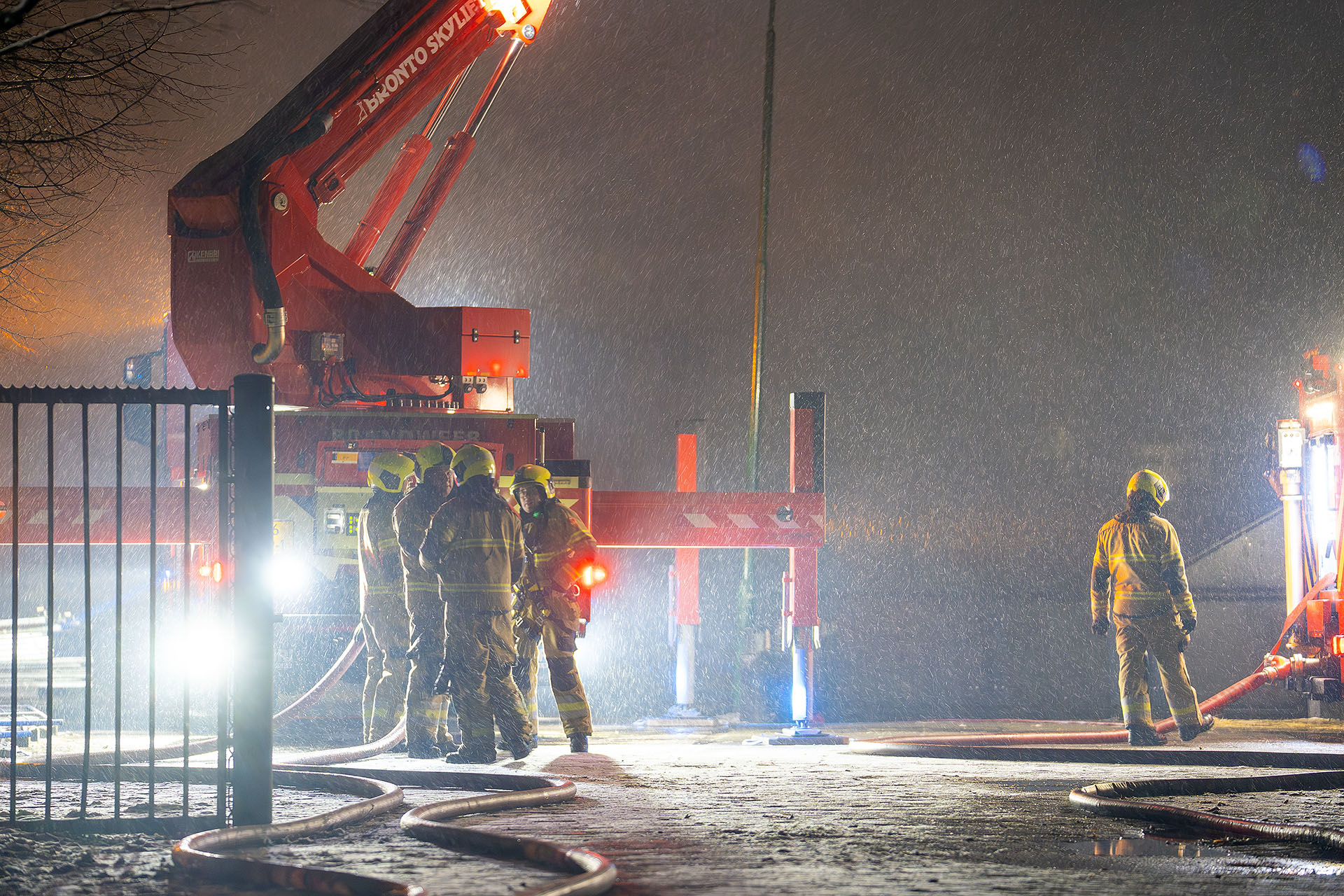 Eenmaal ter plaatse bleek het om een felle uitslaande brand in een houtwerkplaats te gaan. Daarbij kwam veel rook vrij. De brandweer schaalde snel op naar zeer grote brand en zette veel materieel en manschappen in om de vlammen te bedwingen.